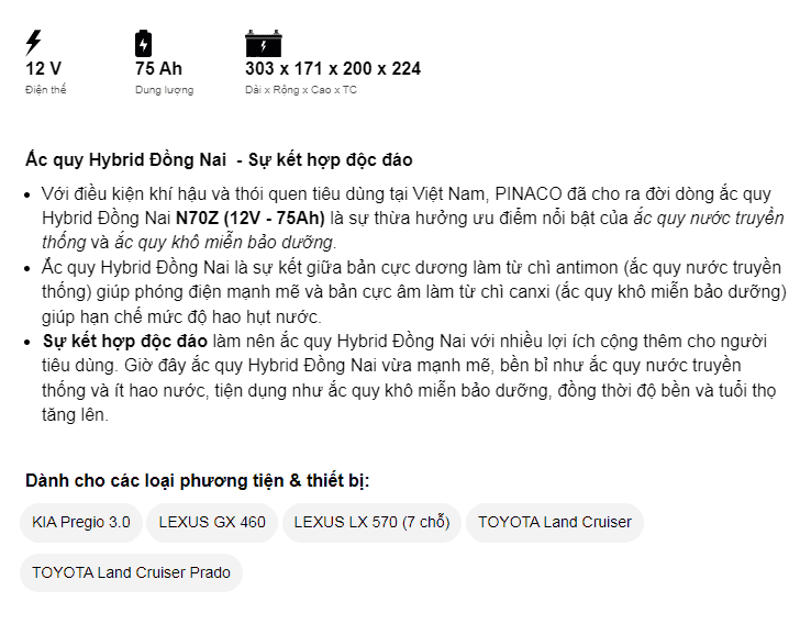 Ắc quy Đồng Nai nước 12V-75Ah (N70Z)