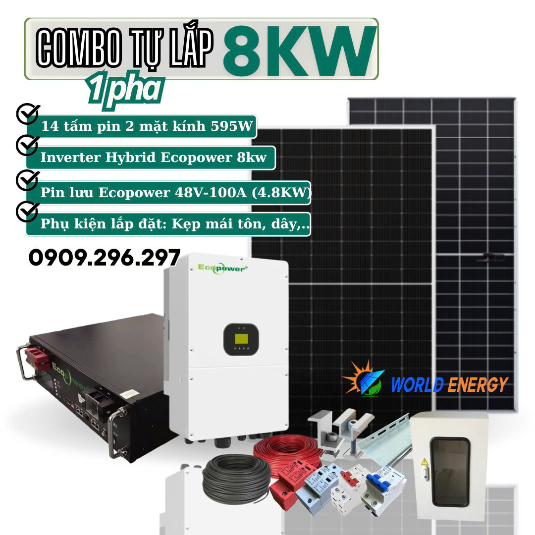 - Bộ biến tần lưu trữ (Hybrid) Ecopower 12KW: 1 bộ