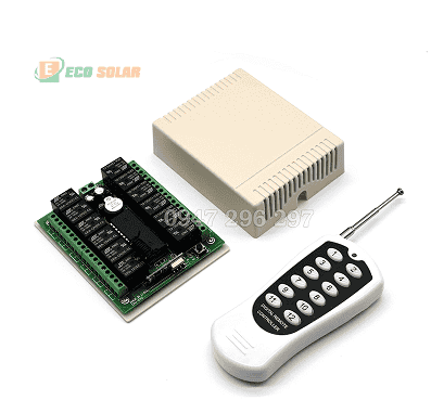 - + Sản phẩm gồm: Bộ công tắc điều khiển từ xa 12 cổng ra(mỗi bộ gồm: mạch điều khiển + Remote