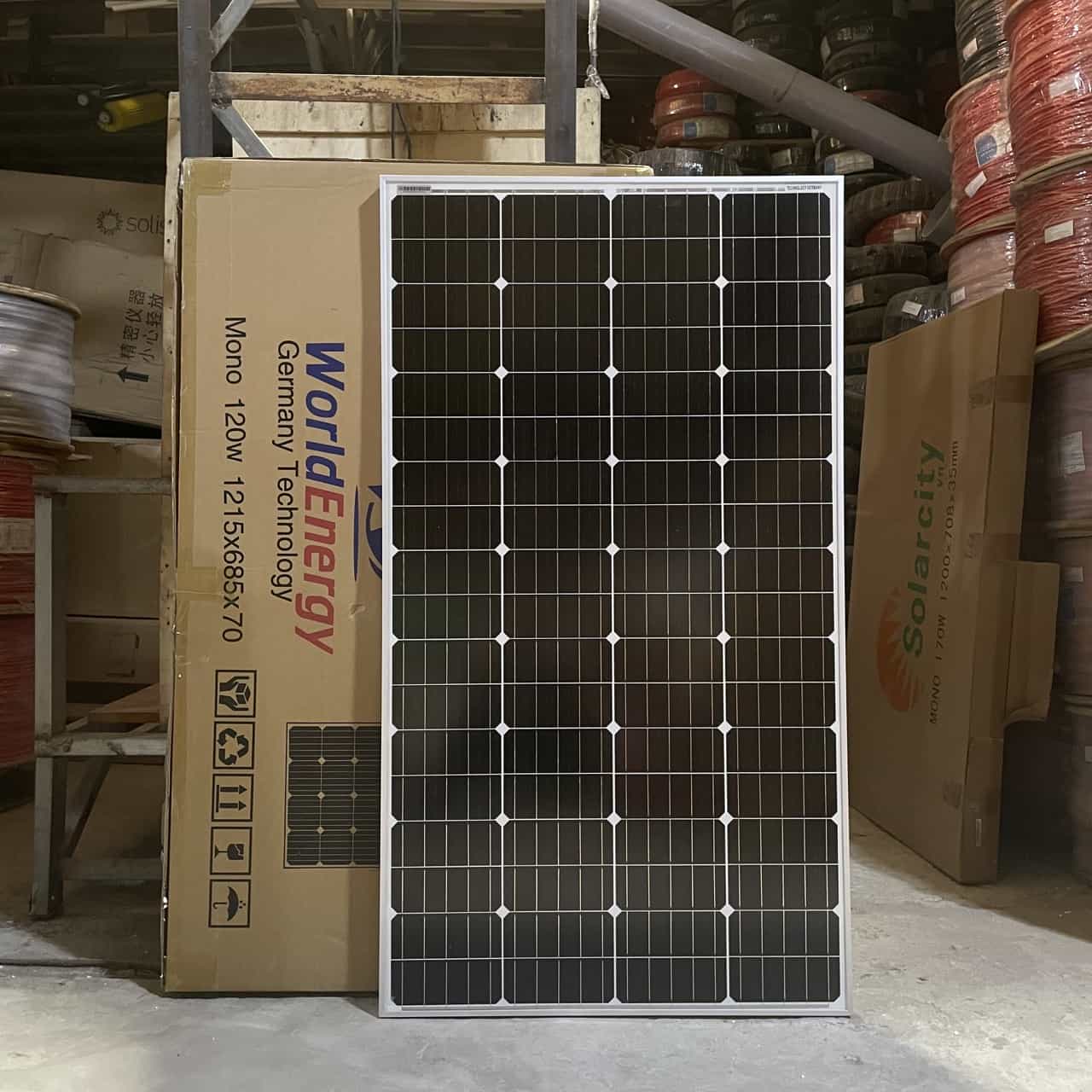 ng lượng mặt trời Mono 120W WorldEnergy (Solar panels) đáp ứng tiêu chuẩn chất lượng nghiêm ngặt của IEC, UL, CE, TUV , ETL, PV Cycle, MCS, BBA, Safety class II. Bảo hành hiệu suất 25 năm để đảm bảo hiệu suất tối đa cho hiệu quả hệ thống cao nhất.
